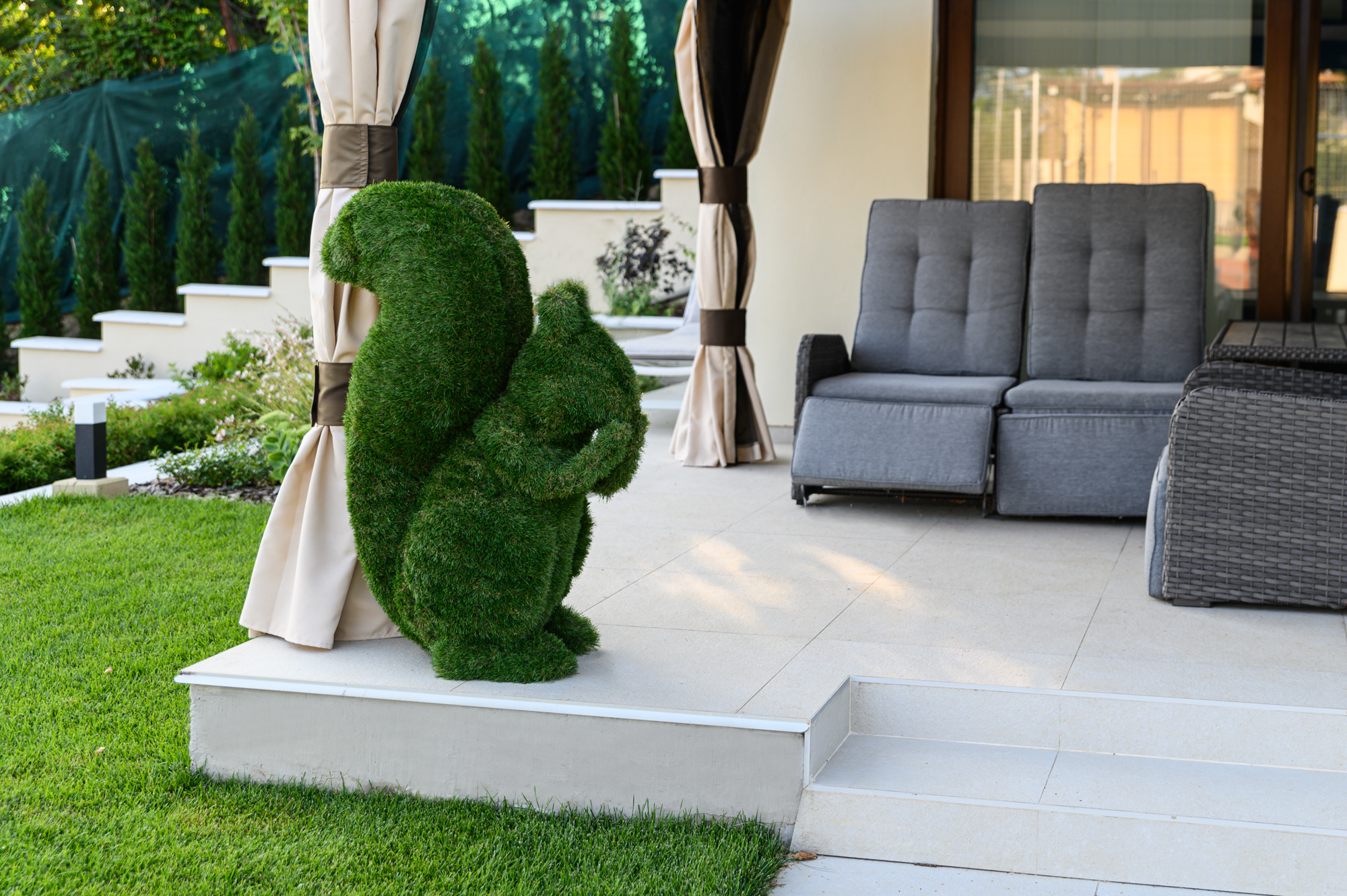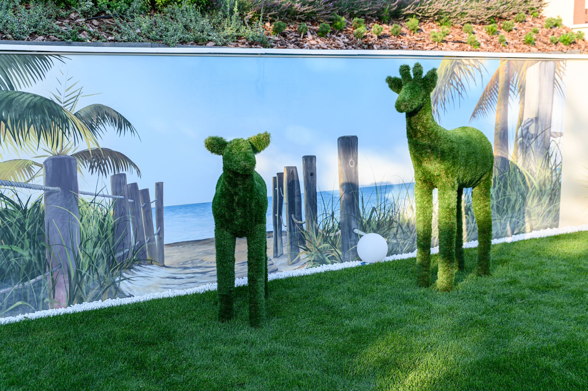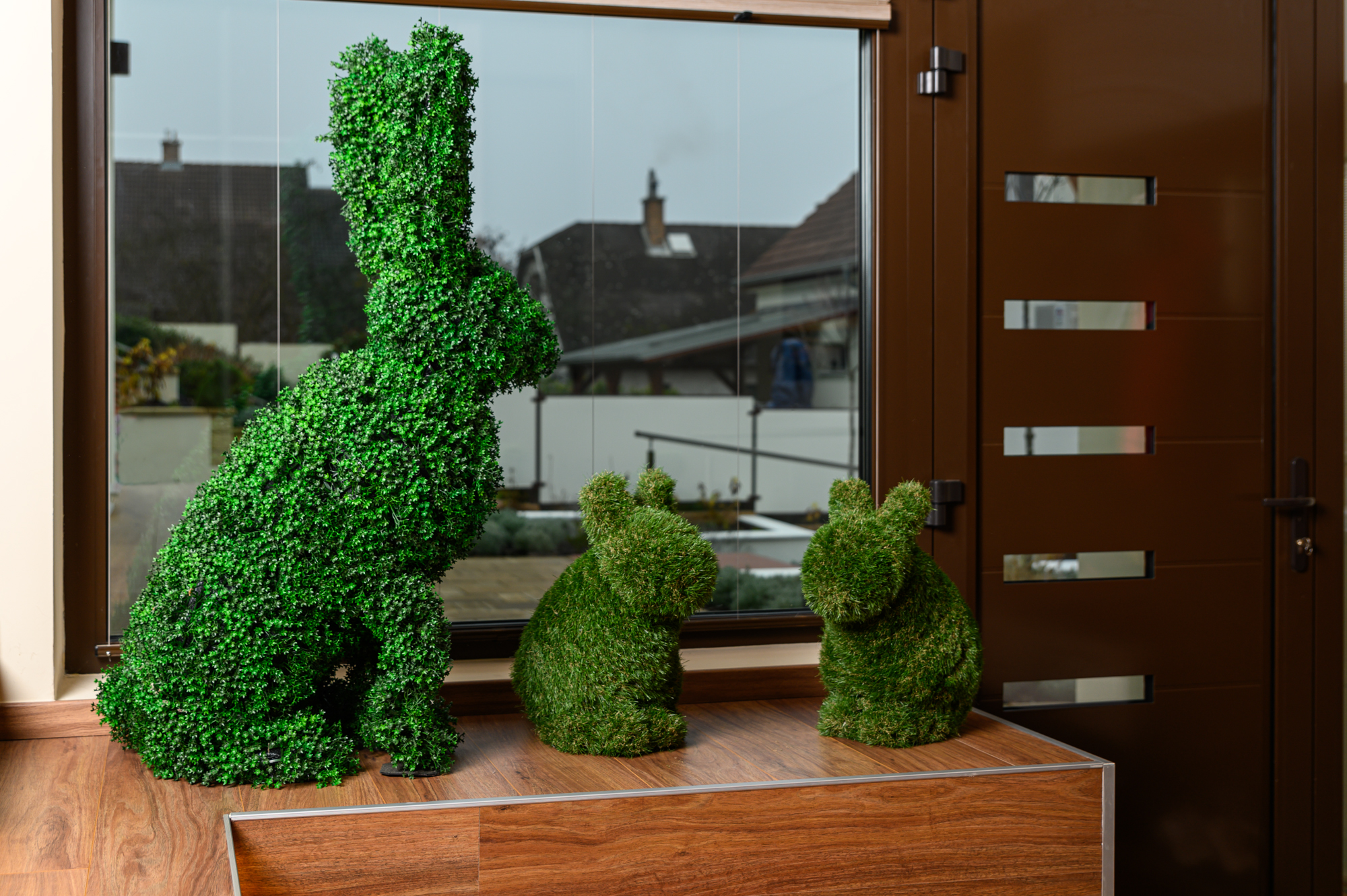 A fotók műfűből készült állatokat mintázó szobrokról készültek. Bővebb információ: www.grassbear.hu